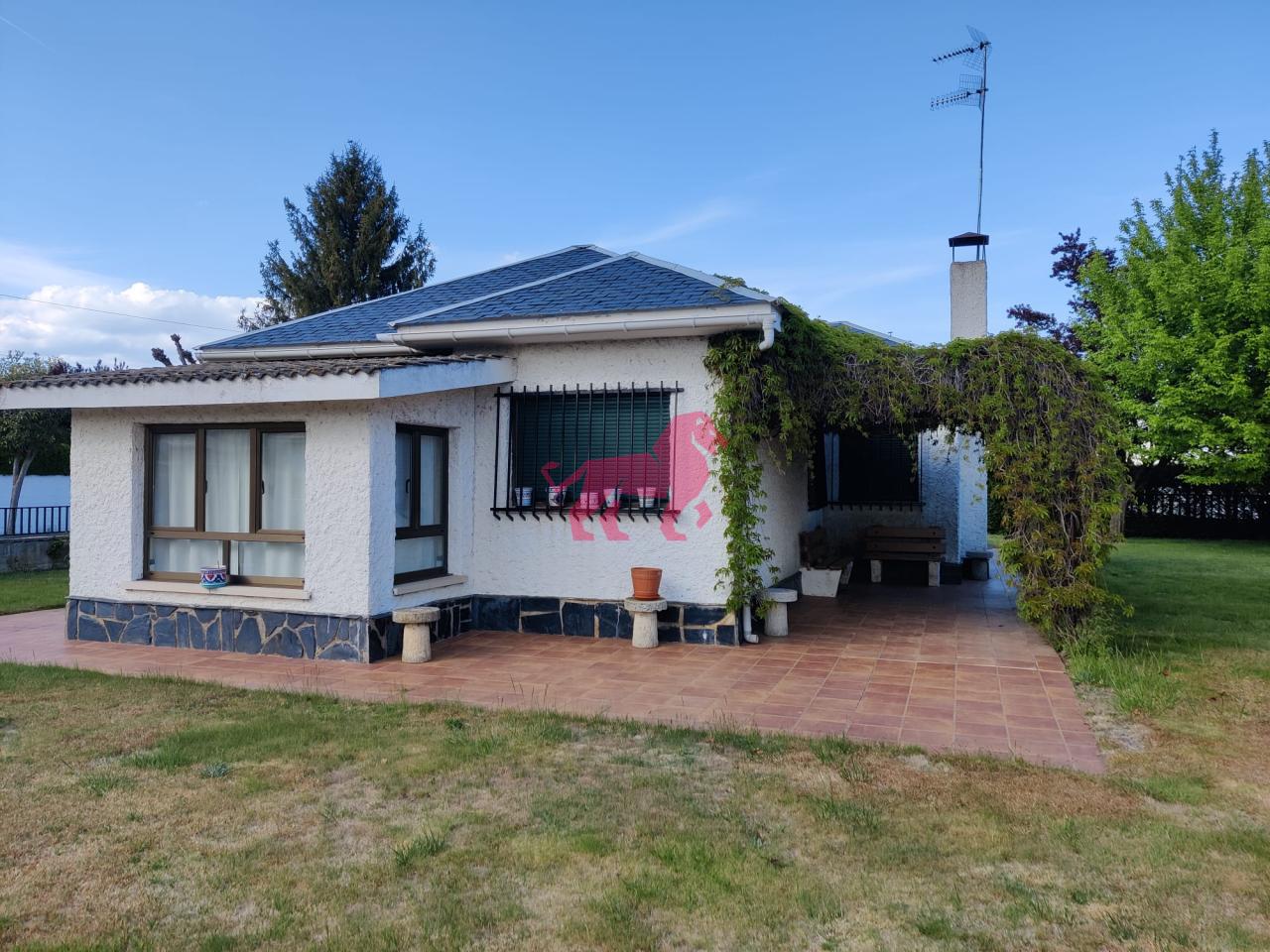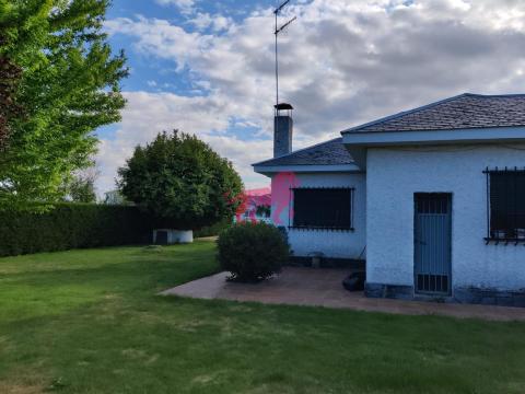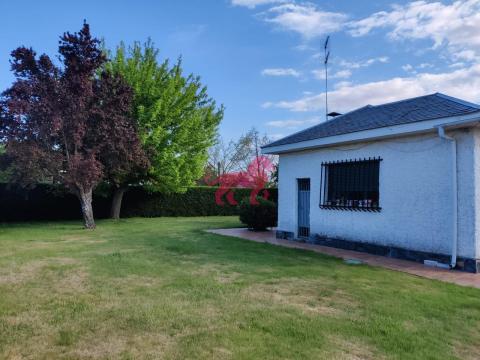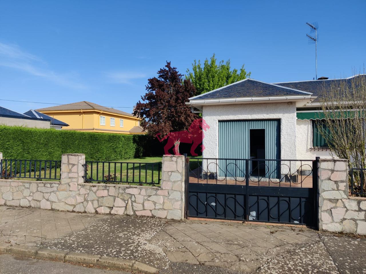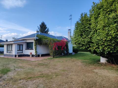 Urbanización Camino de Santiago, a 22 Km. del centro de León. Villadangos del Páramo. Chalet de planta baja en amplia parcela de 609 m². Salón con chimenea, tres habitaciones pequeñas, cocina equipada y baño. Calefacción y agua caliente individual de gasoil.